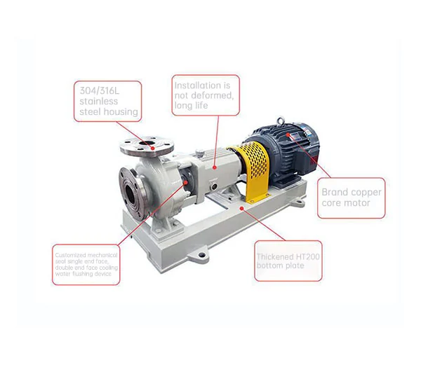 1. There are feet cast on the pump body, which can bear any load from the pipeline and directly transmit it to the foundation, so that the pump rotor will not be bent due to the load of the pump, thus ensuring a good service life of the bearing and mechanical seal.